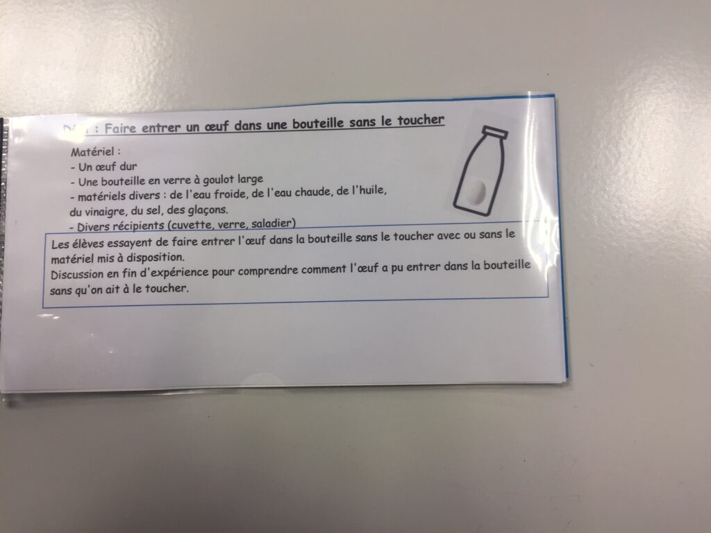 A l’occasion de la fête de la sciences entre les 1 et 11 octobre 2021, les élèves des classes de CM1 des écoles Zola, Voltaire, Berthelot de Denain et de Thorez de Wavrechain ont pu bénéficier d’ateliers de découverte dans les collèges de secteur. Les professeurs de SVT et de sciences physiques de ces collèges avaient préparé avec leurs collègues du premier degré des activités afin de permettre aux élèves de CM1 d’expérimenter au sein d’une salle de sciences au collège. Comment faire rentrer un œuf dans une bouteille ? Comment réaliser un cocktail sans mélanger les liquides? Comment nettoyer de l’eau usée?…. Autant de questions résolues à travers de belles expérimentations!