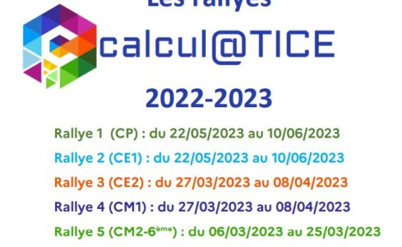 Les inscriptions en ligne , c’est maintenant! du 3 janvier au 26 février 2023https://calculatice.ac-lille.fr/rallyes du CP à la 6ème